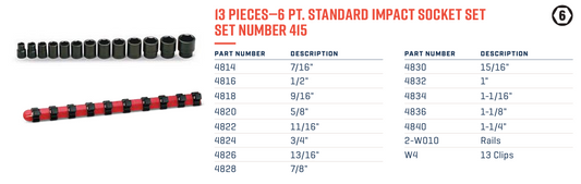 Wright Tool 6 Point Standard Impact Socket Set 13 Piece 1/2" Drive SAE 415