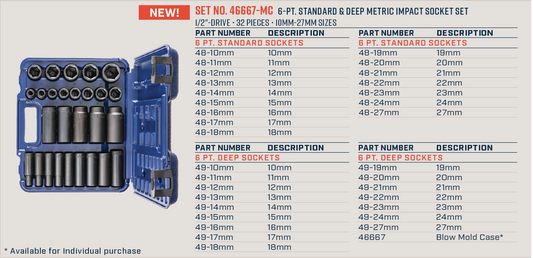 Wright Tool 6 Point Standard & Deep Impact Socket Set 1/2" Drive Metric 46667-MC