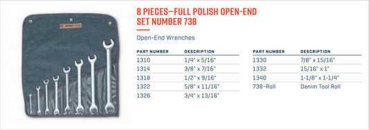 Wright Tool Open End Wrench Set 8 Piece SAE 738