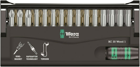 Wera Bit Check 30 Wood 1 Bits Assortment Set 30 Piece 05057433001
