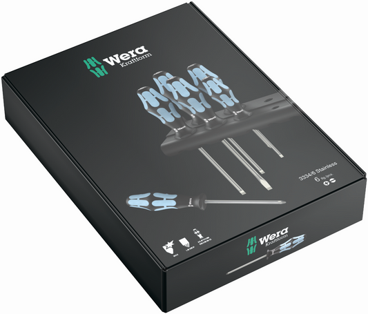 Wera 3334/6 Stainless Steel Slotted/Phillips Screwdriver Set + Rack 05032060001
