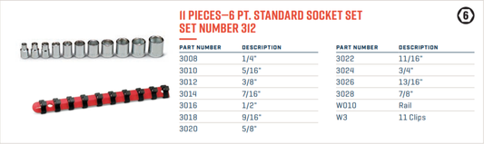 Wright Tool 6 Point Socket Set 11 Piece 3/8" Drive SAE 312