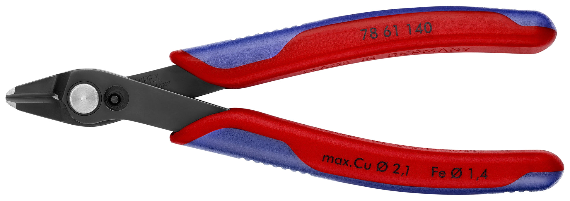 The 5 1/2" version is for greater stability and cutting performance. Precision ground cutting edges without bevel for flush cutting the finest of wires e.g. in electronics and precision engineering. Precisely shaped tips also cut adjacent wires from 1/64" (0.20 mm) diameter. Opening spring and opening limiter user-friendly handle width. Extremely smooth movement for minimum operator fatigue. Cutting edge hardness (approx. 64 HRC). Special tool steel, oil hardened in multiple stages. With opening spring and opening limiter. Pliers burnished. Handles with multi-component grips.