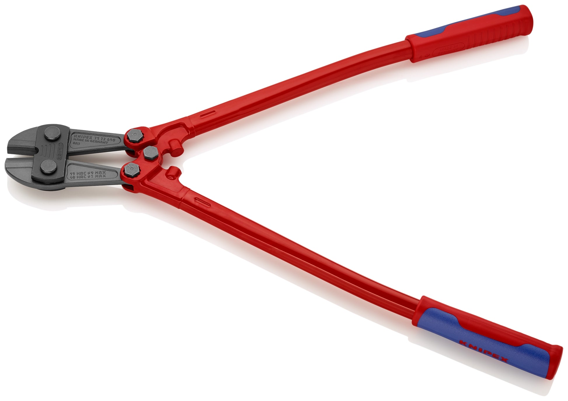 High cutting performance with minimum effort due to optimum coordination of the cutting edge angle and transmission ratio. Cutting capacity of steel up to 48 HRC. Robust cutting edges with a hardness of (approx. 62 HRC). Forged-on stopper with comfortable shock absorber. Good access due to very flat construction of head and joint area. Comfortable angled handles to minimize effort. Sturdy, two-color dual component handles won’t slip. Precise adjustment (12 positions) by cam bolt. Spare cutter head part number 71 79 610. Blade is made of chrome vanadium heavy-duty steel; forged, multi stage oil-hardened. Joint is made of special tool steel, forged. Blade is made of chrome vanadium heavy-duty steel; forged, multi stage oil-hardened. Joint is made of special tool steel, forged. Handles are made of steel tube, powder-coated.