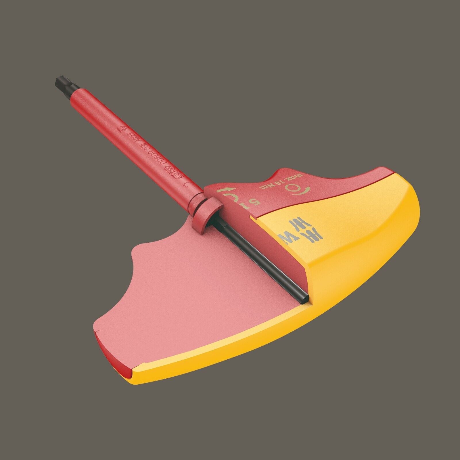 Wera VDE torque indicator with fixed torque for hexagon socket screws. Tamper proof. The robust slip clutch generates a clearly audible and tactile trigger that signals when the set torque is reached, making it impossible to apply any further torque. The loosening torque value is significantly higher than the set tightening torque, therefore no additional tools are needed for loosening screw connections. The shape of the handle perfectly fills the whole hand and fingers comfortably lie in the softly rounded recessed grips. This ensures optimal, ergonomic power transfer. Individually tested tool as per IEC 60900 at 10,000 V for safe working at the approved voltage of 1,000 V.