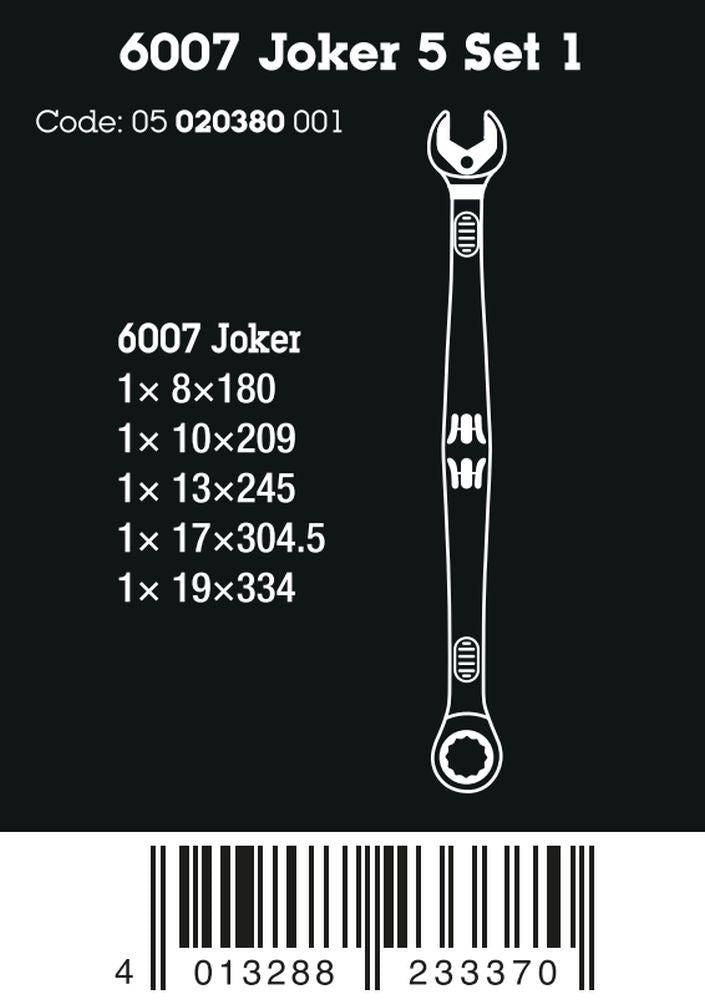 Wera 6007 Joker 5 Set 1 Combination Wrench Set 5 Pieces Metric 05020380001