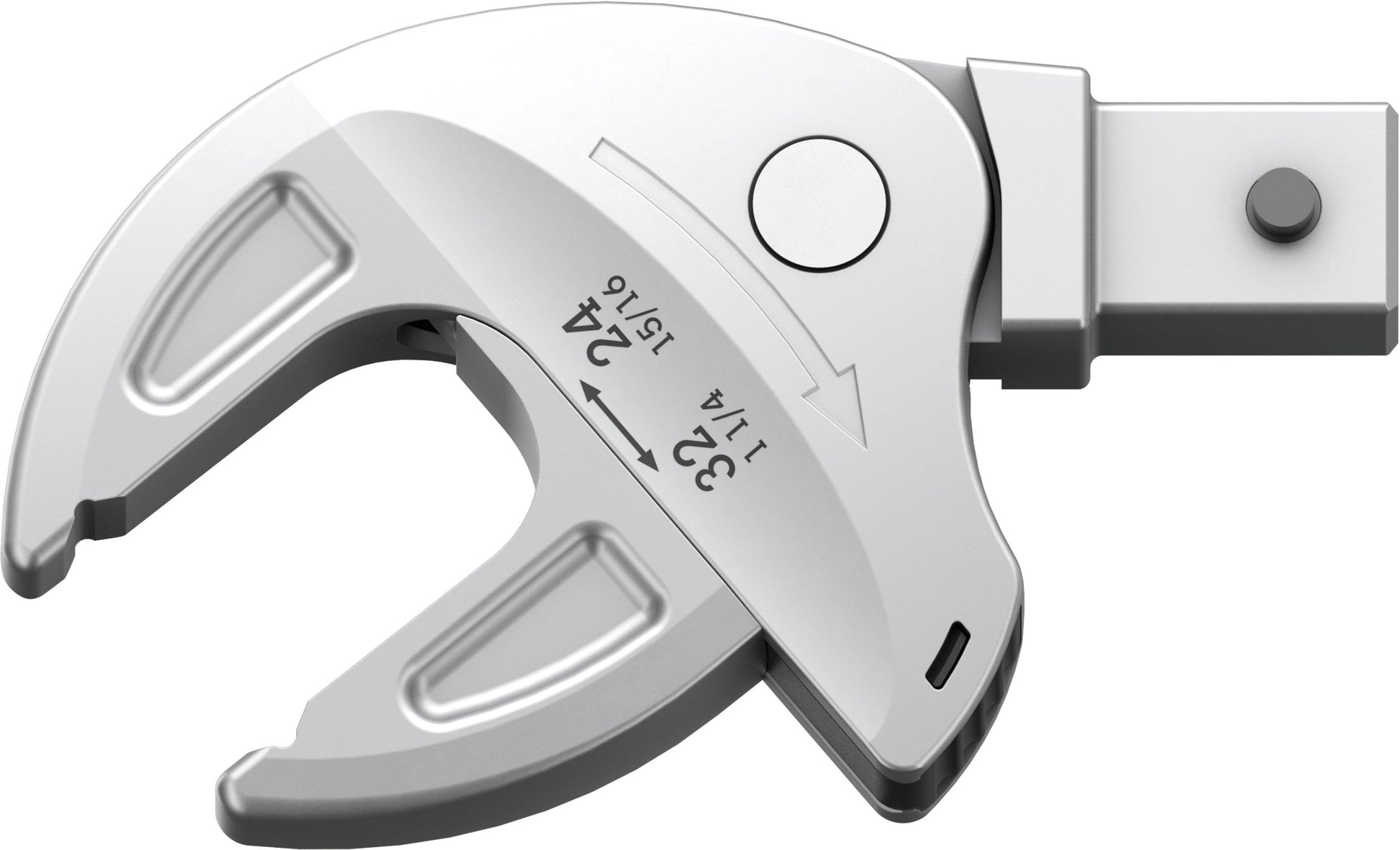 Self-setting insert spanner, for hexagon screw heads and bolts, for torque wrenches of the Click-Torque X and XP series with 14x18 mm mounting. Covers all metric and imperial dimensions in the respective field of application. With its continuous and parallel jaws, the tool replaces several single spanner sizes. The required size is automatically and continuously set when attaching the tool to the hexagon bolt or screw. The integrated lever mechanism securely clamps the hexagon screw or bolt between the jaws, which significantly reduces the risk of slippage or damage. The ratchet feature ensures fast and consistent screwdriving without removing the tool. By using the corner-width rectangular prisms, a return angle of only 30° can be achieved.
