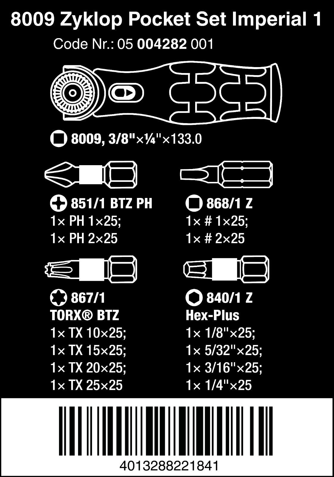 Wera 8009 Zyklop Pocket Set 1 Socket Wrench 3/8" Drive SAE 13 Pieces 05004282001
