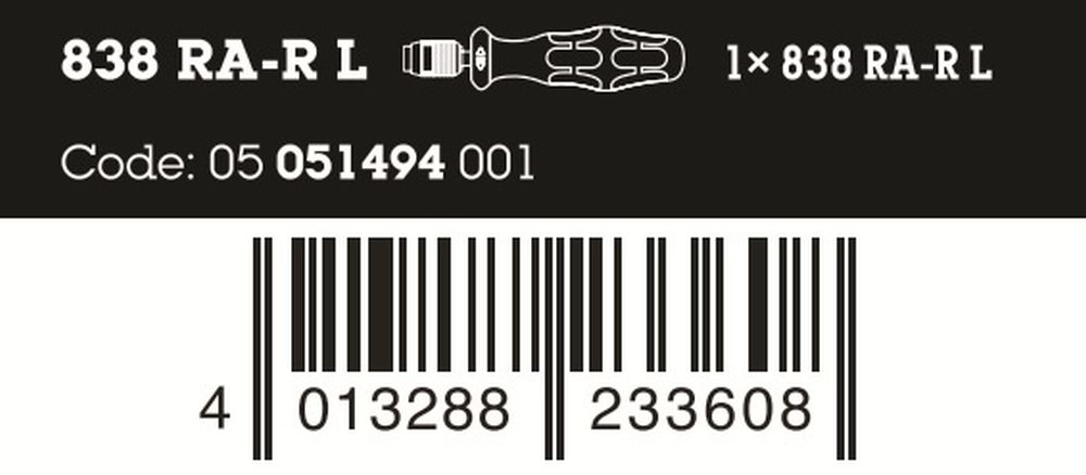Wera 838 RA-R L Ratcheting Bit Holding Screwdriver 05051494001