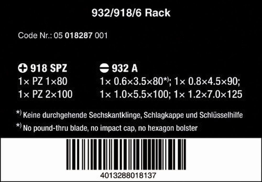 Wera 932/918/6 Kraftform Chiseldriver Screwdriver Set With Rack 05018287001