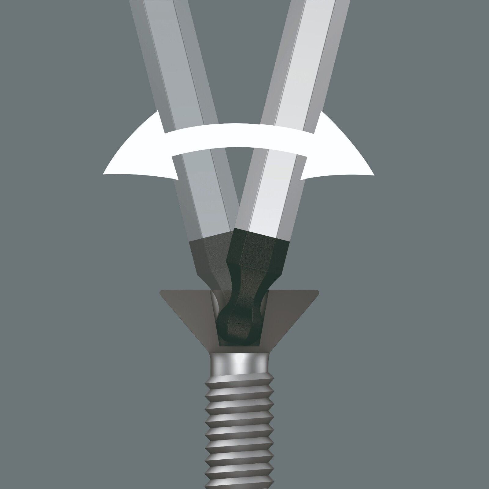 Premium Wera L-key with color-coded, convenient hose sleeve, which makes the tool easily accessible and the ergonomic and comfortable handle is easy on the hands even at low temperatures. The Hex Plus profile offers larger contact surfaces in the screw head. The notch effect is reduced to a minimum and the destruction of the screw head is almost eliminated. The ball on the long arm allows safe working even in difficult installation positions. The BlackLaser surface treatment makes for excellent surface protection, even from corrosion, and for long durability. Lasered and therefore abrasion-proof size marking on the L-key for quick access.