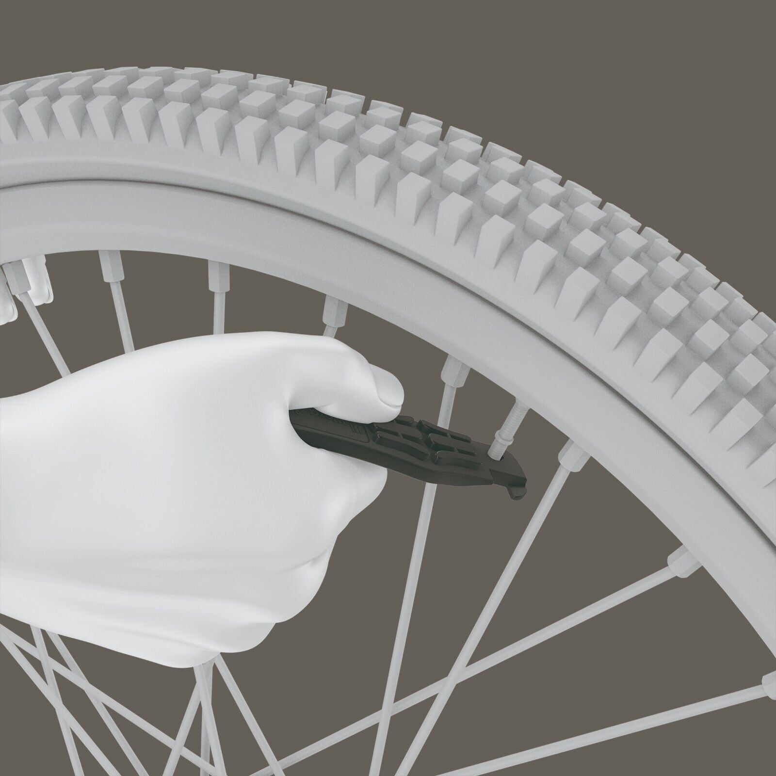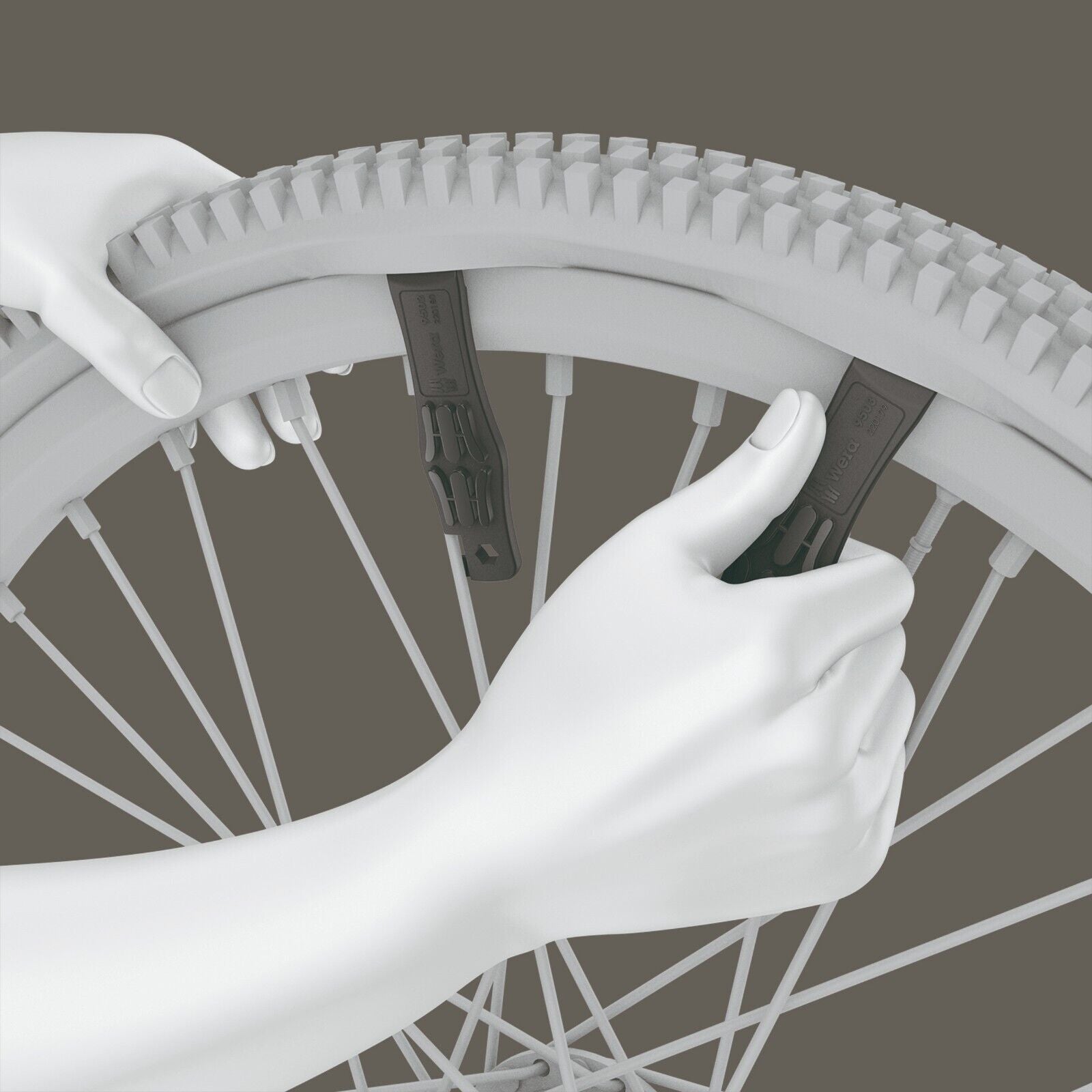 Bicycle tool set with ratchet, bit, sockets and a bit hand holder in a compact space. Perfect as a universal companion with a variety of screwdriving challenges. High quality bit hand-holder with Kraftform Plus handle for comfortably ergonomic work, which avoids blisters and calluses. Hard grip zones for high working speed, soft grip zones for high torque transmission. Bit ratchet for quick work when bolting by machine or by conventional hand tool is not possible due to lack of space. Fast switching from left to right and vice versa via the switching lever. Quick turning (by thumb) over the grooved ratchet head. Simplest operation even with just one hand. Ergonomic ratchet head/lever: Kraftform geometry with perfectly shaped contact surfaces for fingers. The direct bit holder in the ratchet head and the smallest tool design allow for low working heights. Small return angle of 6° for precise work. Robust drop forged full steel design. Torques of over 65 Nm. The Rapidaptor bit holder with quick-turn coating can be used as an extension, for lightning-fast bit changes with only one hand without auxiliary tools of even the smallest bit sizes. Tough bits, for universal use. Hand and machine sockets for almost all applications. With "Take it easy" tool finder with color coding by size - for easy and fast location of the required tool. Easy to grasp even with oily hands. With ball-catching groove. For external hexagonal bolts and sockets. Made of matt-chromed chrome-vanadium. With the glass fiber reinforced plastic tire jacks, the tires can be safely levered off the rim without damaging the rim.