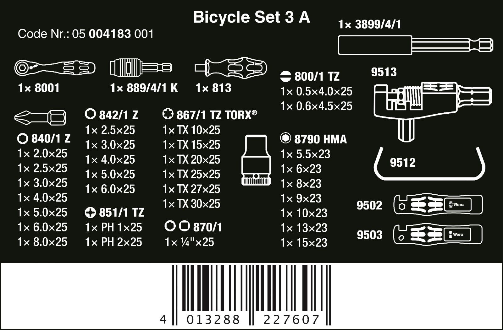 Wera Bicycle Set 3 A Zyklop Mini Ratchet Bit Set 1/4" Drive Metric 05004183001