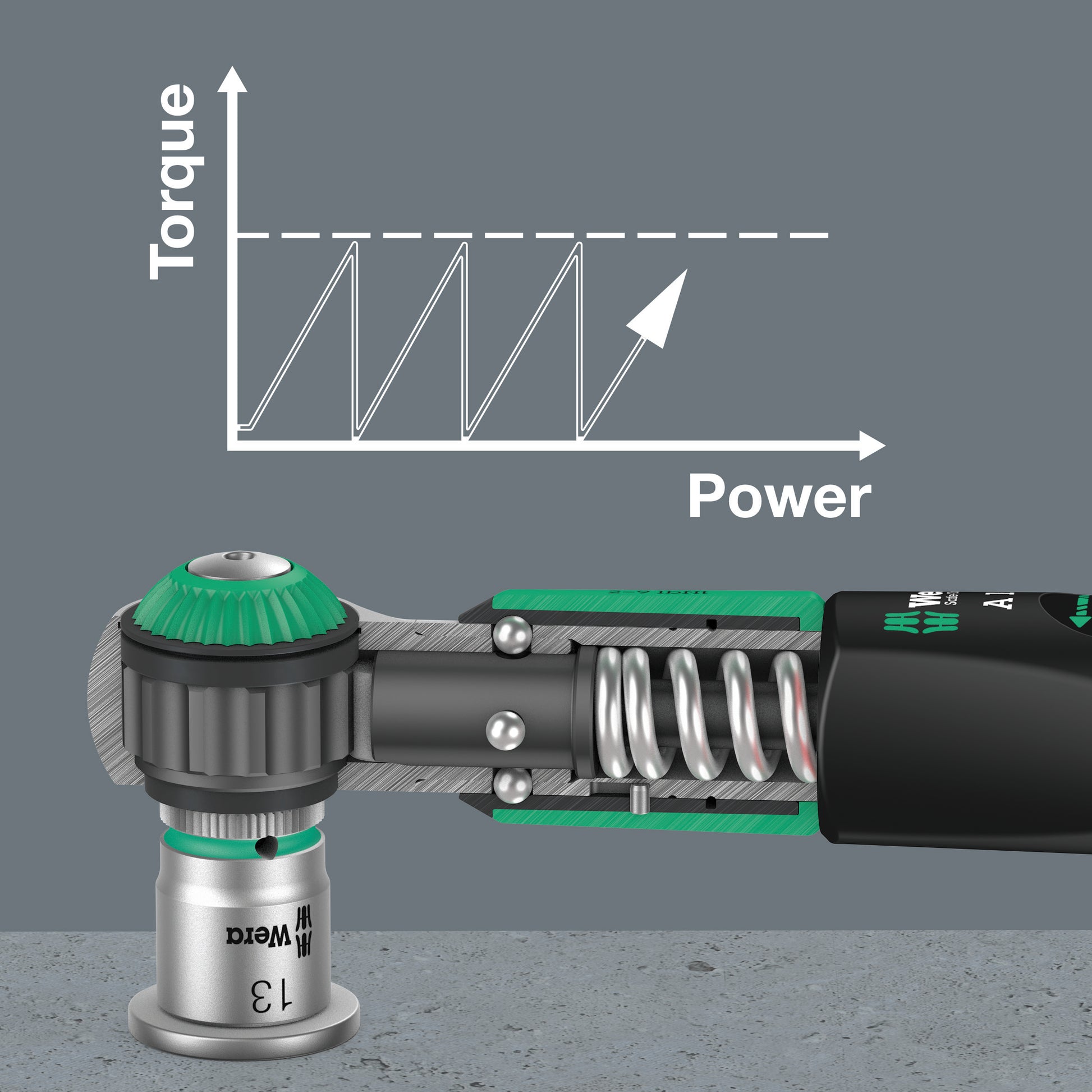 - Easy setting and saving of the desired torque value with audible and tactile clicks when reaching the scale values